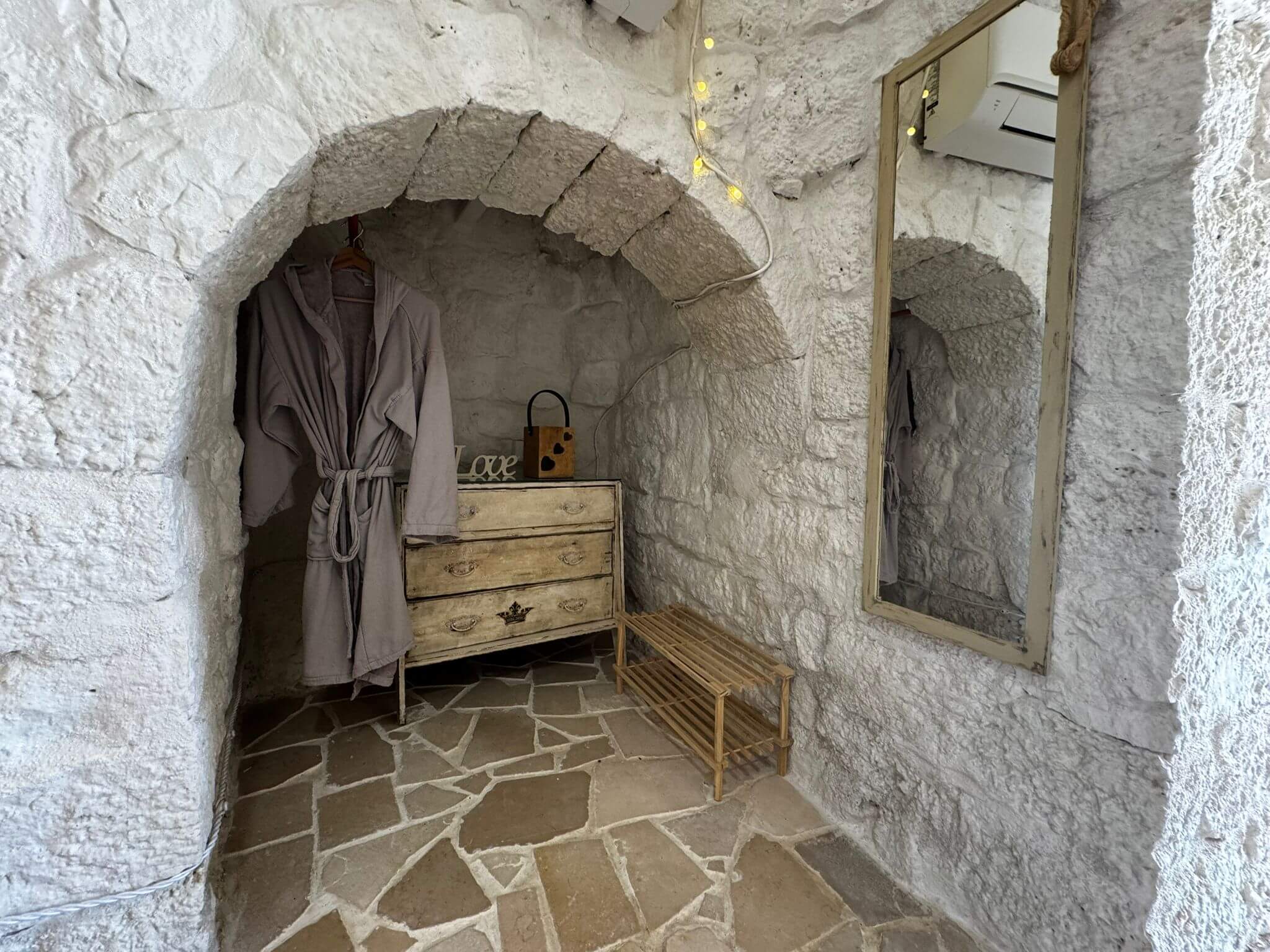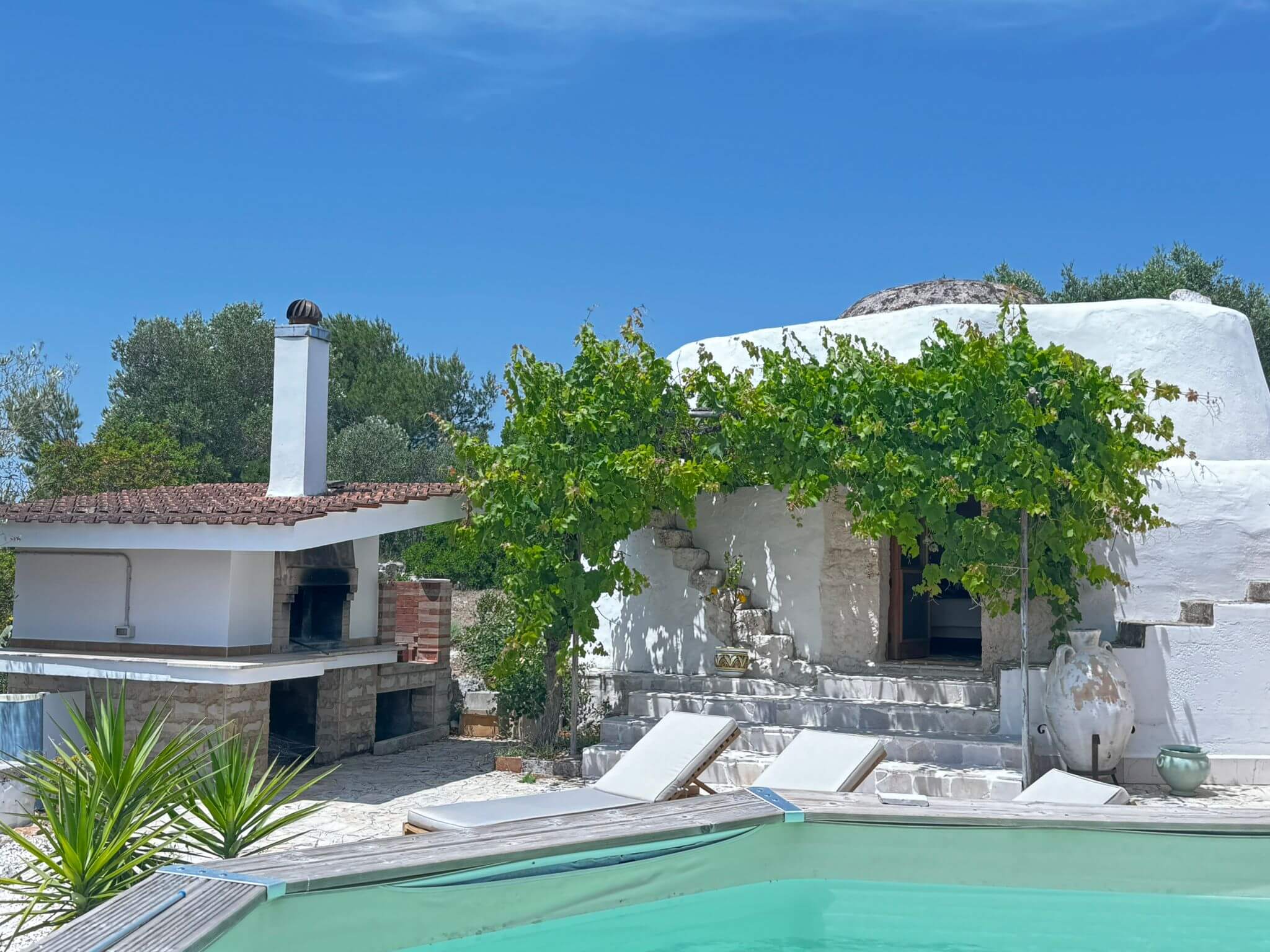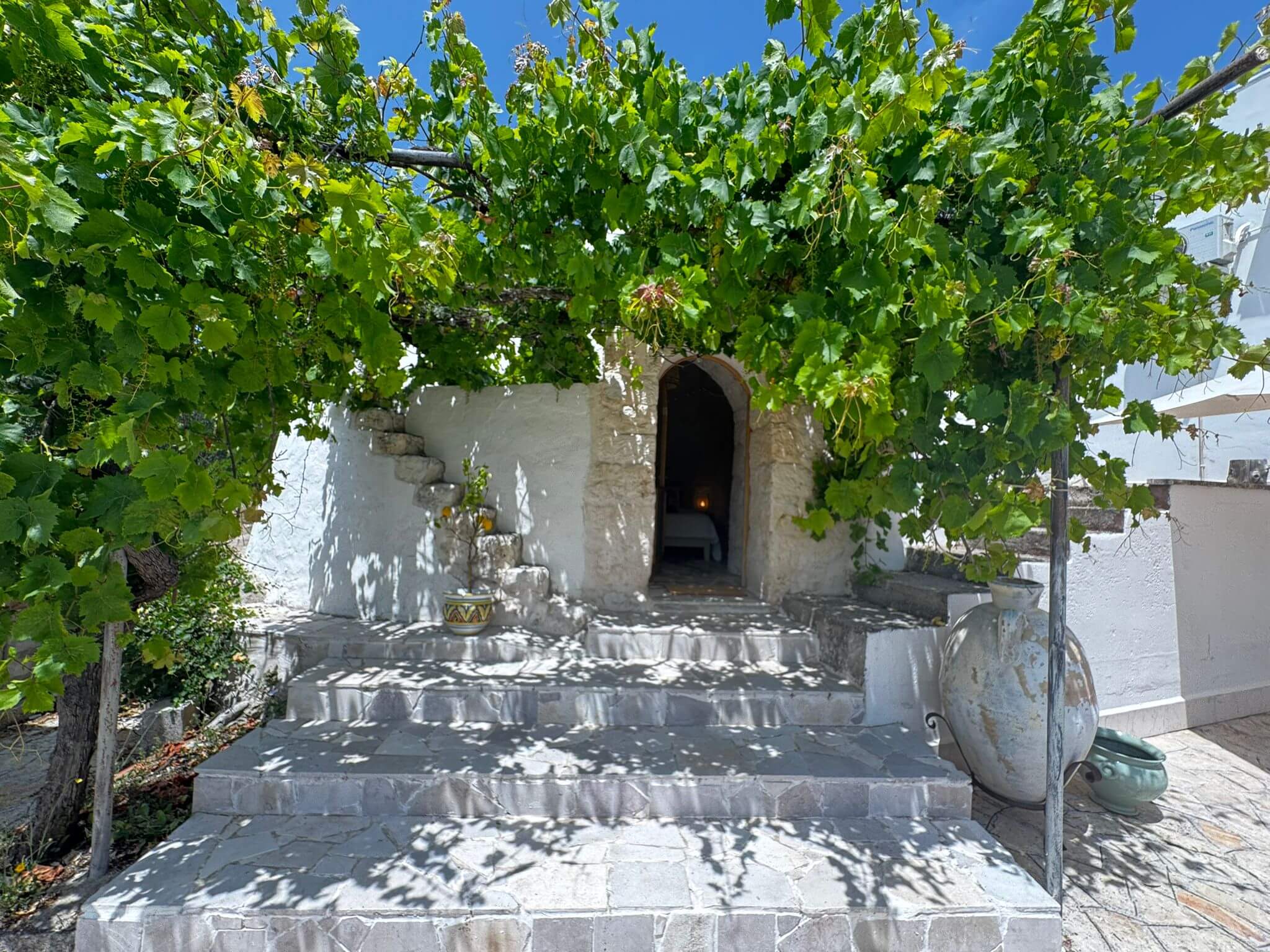 Enkele stappen van het hoofdhuis verwijderd, biedt de Trullo een authentieke Pugliaanse ervaring met een koepelvormig plafond, stenen muren en een eigen en-suite badkamer. Een perfecte plek voor wie extra privacy en charme zoekt.