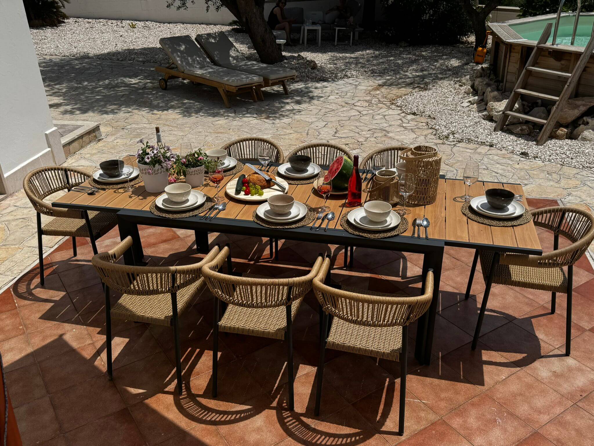 Of je nu leest in de schaduw, dobbert in het zwembad of verhalen deelt met een glas lokale wijn — de buitenruimtes zijn ontworpen voor comfort, schoonheid en gemak.